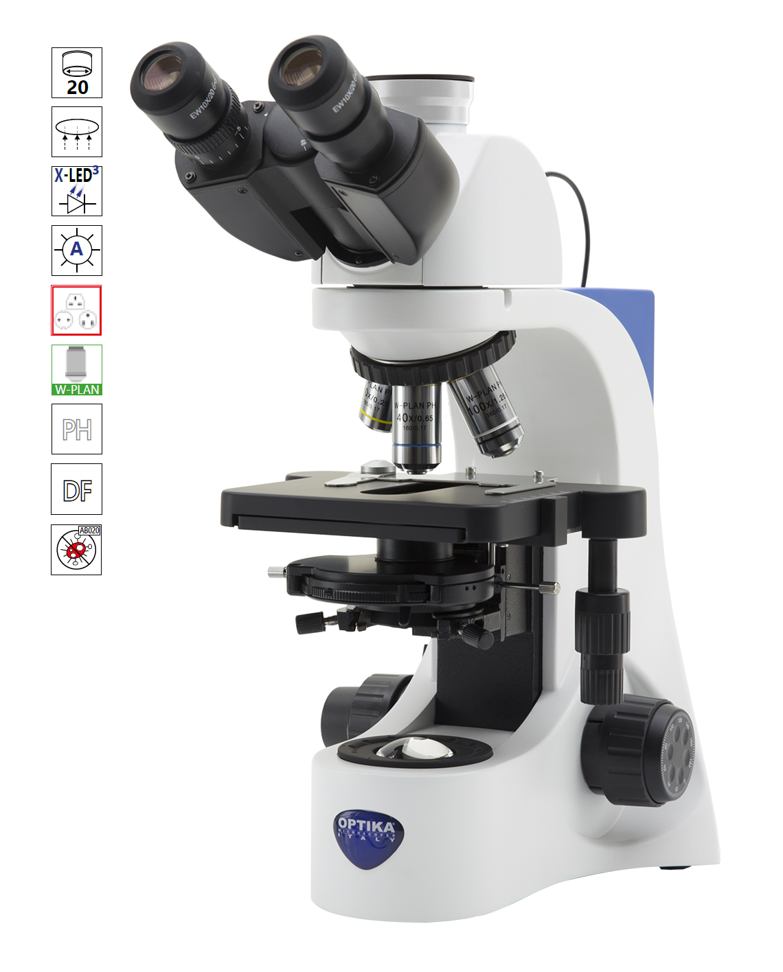 Phase contrast, darkfield and brightfield binocular microscope with W-PLAN objectives, rackless stage and combining the exclusive X-LED3 with ALC (Automatic Light Control) for great-looking, rich and high quality view. |