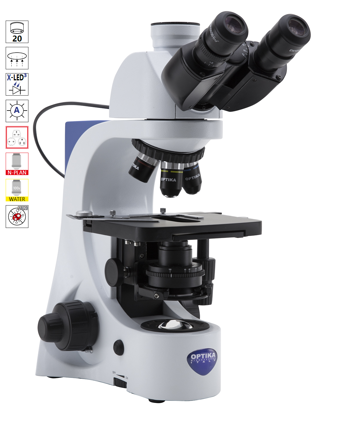 OPTIKA is proud to introduce its exclusive X-LED³ lighting source. A special combination of high-efficiency LEDs and a special optical system allows OPTIKA to double the light intensity generated by a standard LED. The resulting light is comparable to the light generated by a 50W halogen lamp but with a color temperature of 6300K, representing sunlight. |
