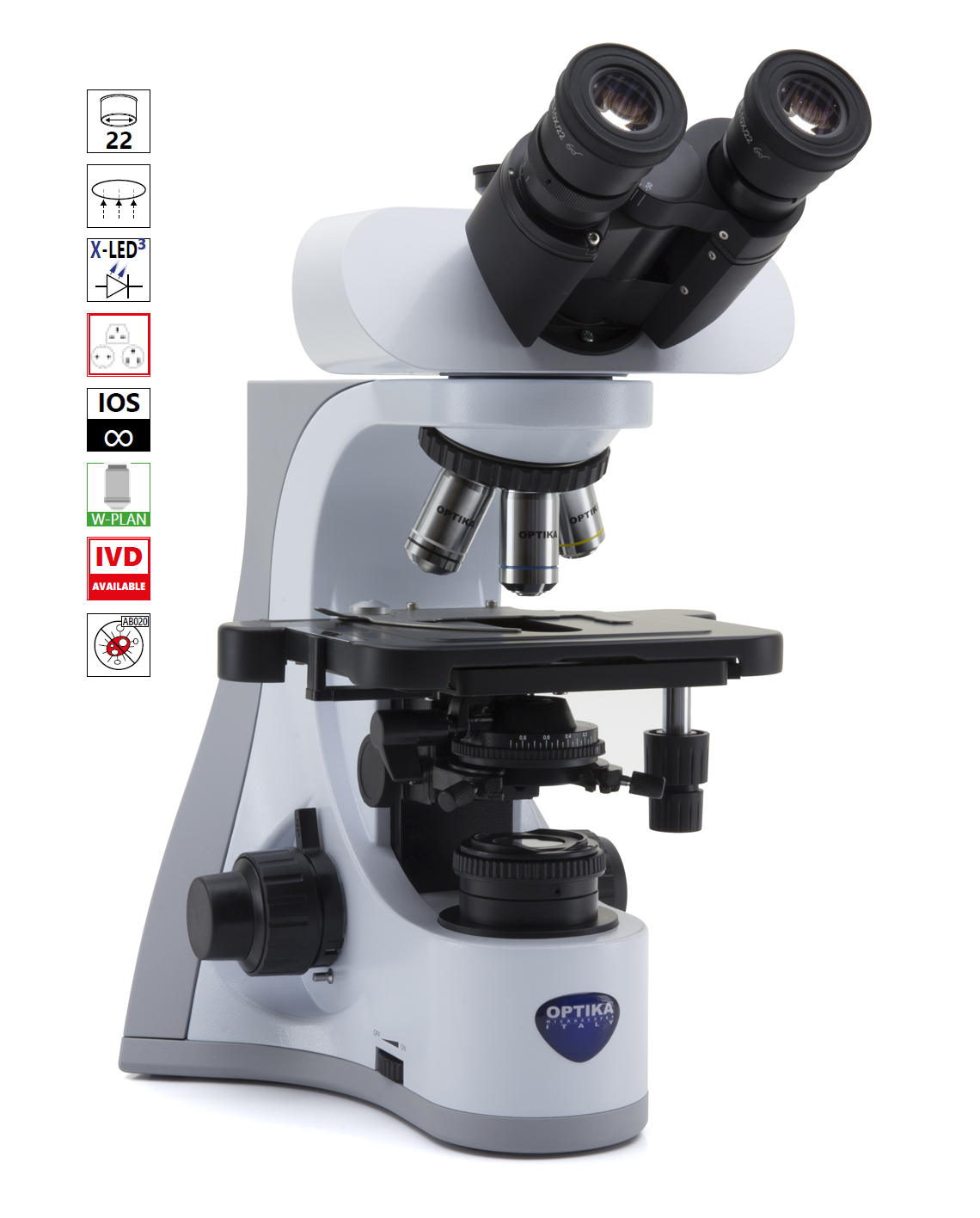 The OPTIKA B-510BF is a high-end routine laboratory microscope from the advanced B-500 series, designed for intensive use in research and clinical diagnosis. It features a modern, ergonomic design with a Binocular head and high-performance IOS W-PLAN (Infinity Corrected) objectives. This model stands out for its wide field of view (FN 22) and its state-of-the-art illumination system, ensuring fatigue-free operation and superior image fidelity.